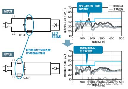 圖11:LED燈泡的輻射噪聲對(duì)策示例