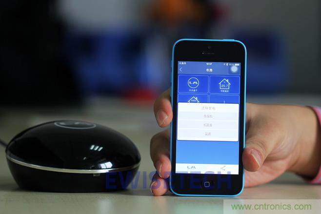靈米智控盒子采用藍(lán)牙4.1技術(shù)連接手機(jī),擁有藍(lán)牙4.1的IPhone手機(jī)能夠輕松連接,接通盒子電源,盒子工作指示燈為紅色并快速閃爍在一分鐘內(nèi)點(diǎn)擊APP主界面上的任意一個(gè)虛擬房間,進(jìn)入下一級(jí)界面,點(diǎn)擊界面上的加號(hào)出現(xiàn)并聯(lián)對(duì)話框,同時(shí)靈米盒子的工作指示燈由紅色變?yōu)樗{(lán)色并快速閃爍,大約15秒左右左右并聯(lián)成功,盒子工作指示燈由藍(lán)色再一次轉(zhuǎn)換為紅色并常亮一分鐘后熄滅。APP軟件界面出現(xiàn)靈米盒子和溫濕度圖標(biāo),靈米智控盒子帶有高精度溫濕度感應(yīng)器,可以24小時(shí)監(jiān)測所在房間的溫濕度情況并通過藍(lán)牙傳輸并顯示在手機(jī)APP的界面上。