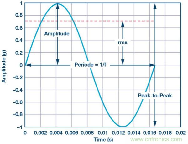 在時(shí)域振動(dòng)分析中,會(huì)考慮有效值(均方根,即rms)、峰峰值和振動(dòng)幅度(見(jiàn)圖4)。