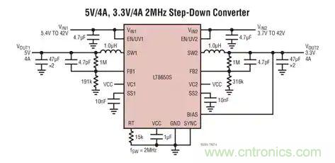 圖1:ADI公司最新推出的LT8650S雙通道4A 42V同步降壓靜音電源開關(靜態(tài)電流6.2µA)(來源:ADI)