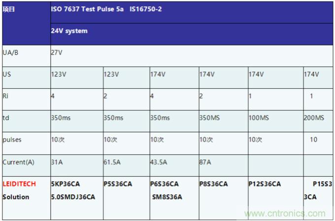 對于24V系統(tǒng)因要通過36V直流測試,所以同理,TVS電壓選擇SM8S33CA SM8S36CA SM10S33CA SM10S36CA.