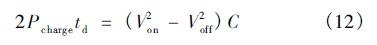 由上,采用超級電容電壓滯環(huán)比較控制法,超級電容向蓄電池充電一次最短時(shí)間為td,根據(jù)能量守恒有: