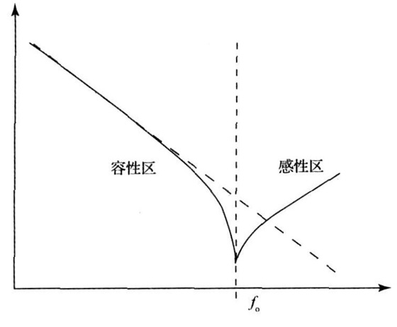 圖2 中的f 0 是電容與其寄生電感構成的諧振回路的諧振頻率, 稱之為自諧振頻率, 實線部分為實際的電容頻率特性曲線, 虛線為理想無寄生電感的電容特性曲線??梢?, 在低于自諧振頻率時, 電容呈現(xiàn)容性, 阻抗隨頻率增高而減小; 然而當頻率超過自諧振頻率時, 電容表現(xiàn)出阻抗隨頻率增高而上升的趨勢, 這恰好是電感的特性。該曲線表明實際的電容僅能工作于自諧振頻率以下, 高于自諧振頻率時, 電容則表現(xiàn)為感性, 無法再繼續(xù)作為電容使用了。可見, 準確的測得電容的自諧振頻率, 求出其寄生電感, 對于電容的正確使用有著非常重要的意義。然而該電感往往非常小, 通常為nH 級別, 一般的LCR 電橋無法測量這種微小的電感。因此就需要一種不同于電橋法的測量這種微小電感的方法。