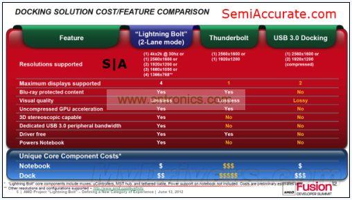 AMD的Lightning Bolt技術(shù)與Intel雷電接口比的不是更高的帶寬,而是針對(duì)后者在多設(shè)備連接及充電上的不足上有備而來(lái)。