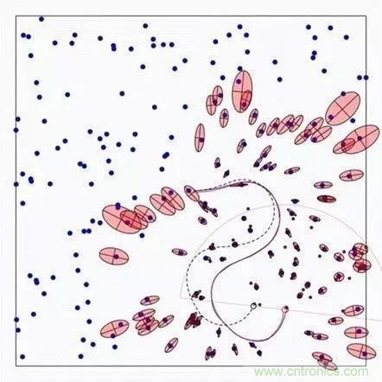 相比柵格地圖,這種地圖看起來就不那么直觀了。它一般通過如GPS、UWB以及攝像頭配合稀疏方式的vSLAM算法產(chǎn)生,優(yōu)點(diǎn)是相對數(shù)據(jù)存儲量和運(yùn)算量比較小,多見于最早的SLAM算法中。