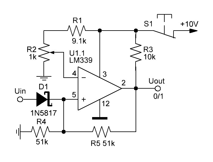 圖 1顯示了一個簡單的晶閘管類似電路,具有高輸入電阻和調(diào)節(jié)開關(guān)電壓的能力。兩款器件都包含 LM339 芯片的比較器 U1.1 作為有源組件。