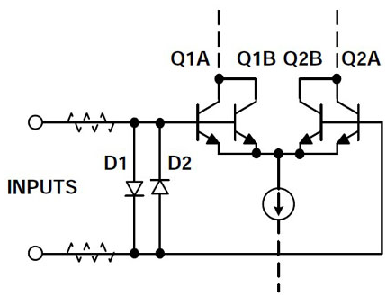 圖4:具有D1-D2輸入差分過壓保護網(wǎng)絡(luò)的運算放大器輸入級