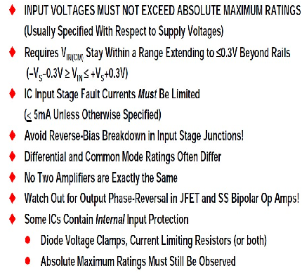 雖然可能存在一些例外,但務(wù)必注意:當(dāng)發(fā)生超出電源軌0.3 V以上的過壓狀況時,多數(shù)IC運算放大器需要輸入保護?! ?br />