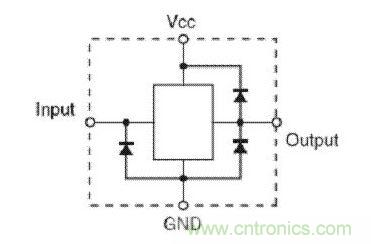所有標準邏輯器件都在輸入或輸出上有 ESD 保護二極管。這些二極管不僅可用于 ESD 保護,而且還可提供電壓鉗位功能,以防輸入或輸出超過 Vcc 或低于接地。這些二極管有多種不同的配置,主要取決于它們屬于那個產(chǎn)品系列。所有器件在輸入及輸出引腳上都有接地二極管。有些器件的保護二極管采用的配置方式能防止器件被反向供電。