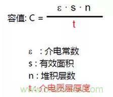 由公式可以看出,容值的大小和介電常數(shù),有效面積,電介質(zhì)厚度,堆積層數(shù)有關(guān)。介電常數(shù)越高有效面積越大極板厚度越小堆積層數(shù)越多,容值越大。