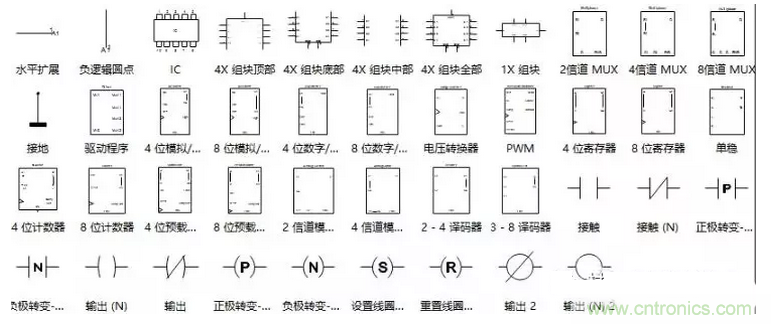 以寄存器、轉換器、計數(shù)器為代表的基礎集成電路元器件,在電路圖中較為常見。