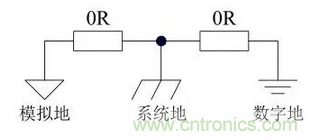 不一定是0R電阻,用磁珠可能效果更好,如果你做模擬信號(hào)對(duì)干擾很敏感,你會(huì)體會(huì)到這個(gè)。