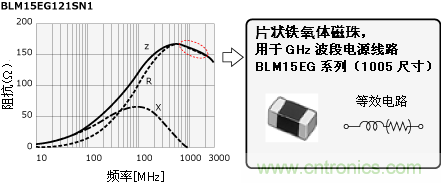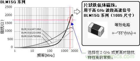 此時,請選擇GHz波段阻抗高的BLM-H系列 (抑制GHz波段噪聲) 或BLM-G系列 (抑制高GHz波段噪聲) 的鐵氧體磁珠。