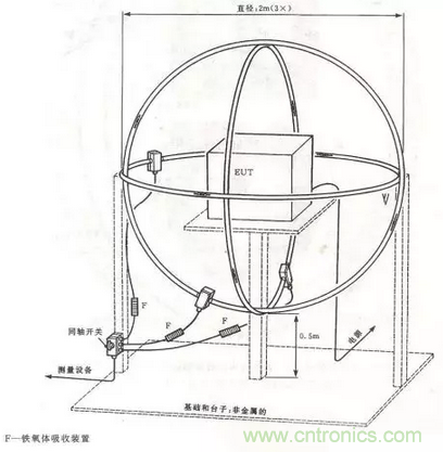 輻射發(fā)射測(cè)試時(shí),測(cè)量天線接收到的騷擾強(qiáng)場(chǎng)包括兩個(gè)部分,一部分是EUT內(nèi)部的導(dǎo)線和電路直接通過(guò)機(jī)箱殼體的縫隙向外的輻射,稱(chēng)殼體輻射,另一部分是由外接電纜引出的共模電流輻射。替代法測(cè)試的目的是僅僅測(cè)試EUT的殼體輻射,所以要求拆除所有可以拆卸的電纜,不能拆卸的電纜上要加鐵氧體磁環(huán),并放在不會(huì)影響測(cè)量結(jié)果的位置上。