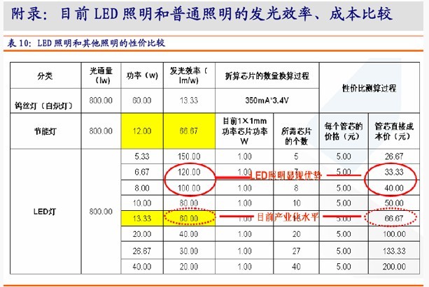 LED照明在2007年開始滲透進入白熾燈照明市場、2012年進入熒光燈照明市場,而大量取代白熾燈和熒光燈將分別在2012年和2020年。