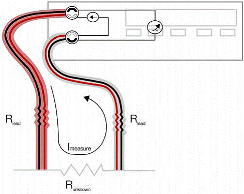 源端引線中的串聯(lián)電阻不影響電流流動。測量/傳感引線幾乎沒有電流流動,因為儀表的輸入阻抗很高。這意味著測量引線中沒有IxR電壓下跌。因此,您只需測量由于流經(jīng)的源電流而在未知電阻器中產(chǎn)生的電壓下跌。
