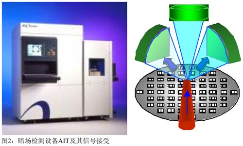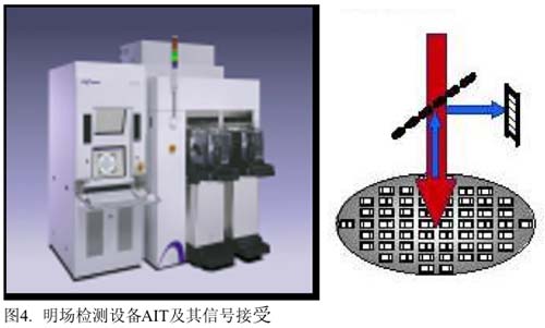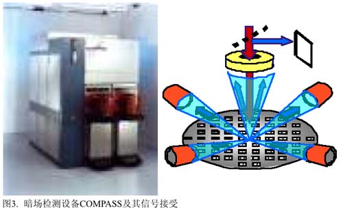 暗場(chǎng)檢測(cè)技術(shù)作為檢測(cè)晶片缺陷的有效手段之一,其優(yōu)點(diǎn)在于以下幾個(gè)方面:首先,在暗場(chǎng)獲得圖像的灰階易于控制和調(diào)節(jié)。暗場(chǎng)是位于硅片上方和硅片成30度角的區(qū)域,在此區(qū)域內(nèi)獲得的圖像灰階,可以通過調(diào)節(jié)激光的能量和探測(cè)器的敏感度來(lái)輕松控制;其次,在暗場(chǎng)內(nèi),可以很容易地辨認(rèn)有具體形態(tài)和位于硅片表面的缺陷,比如刮傷、微粒之類的缺陷;最后,使用暗場(chǎng)的檢測(cè)速度非???,成本相對(duì)比較低,通常被用作快速分析影響產(chǎn)量的各類缺陷超出界定值的問題,AIT和COMPASS是在半導(dǎo)體制造企業(yè)廣泛應(yīng)用的暗場(chǎng)檢測(cè)設(shè)備(如圖2和3所示)。[page]