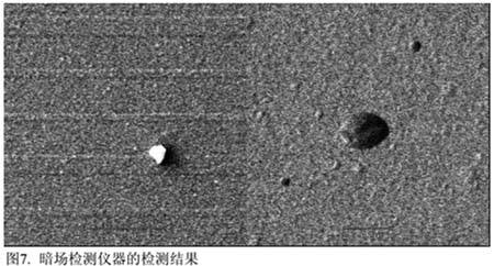 由于暗場(chǎng)檢測(cè)儀器的接受的更多的信號(hào)源都是有一定角度的,所以這種檢測(cè)設(shè)備會(huì)對(duì)晶圓的表面更敏感。所以在對(duì)通孔刻蝕后晶圓進(jìn)行檢測(cè)結(jié)果來(lái)看,能抓到更多的是表面的微粒以及通孔刻蝕過程中的聚合物殘留。所以暗場(chǎng)檢測(cè)儀器在對(duì)通孔刻蝕檢測(cè)結(jié)果不盡如人意,它只能對(duì)通孔刻蝕過程后芯片表面的殘留進(jìn)行有效的檢測(cè),可是對(duì)于通孔刻蝕狀態(tài)沒法完全反映(如圖7所示)。