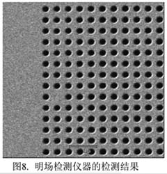 根據(jù)明場(chǎng)檢測(cè)儀器對(duì)通孔刻蝕的檢測(cè)結(jié)果,發(fā)現(xiàn)明場(chǎng)檢測(cè)技術(shù)只能抓住對(duì)通孔未刻蝕開的缺陷,而對(duì)于刻蝕過程中產(chǎn)生的刻蝕不完全缺陷則很難檢測(cè)到。結(jié)果表明,由于此缺陷在通孔內(nèi)太過深入,探測(cè)器能夠收集到的反射電子較少,信號(hào)很弱,導(dǎo)致明場(chǎng)檢測(cè)技術(shù)無(wú)法正常而有效的檢測(cè)到這類缺陷的存在(如圖8所示)。