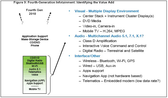據(jù)iSuppli公司,第四代設(shè)計(jì)架構(gòu)今年開(kāi)始得到采用,正在改變汽車信息娛樂(lè)領(lǐng)域的供應(yīng)與消費(fèi)模式,消費(fèi)者對(duì)汽車電子的影響力比以前更大。