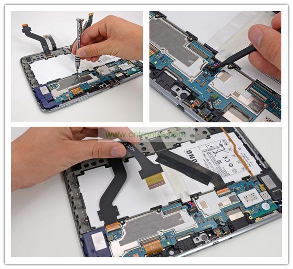 Galaxy Note 10.1上的許多組件只需要將擰開螺絲、拔出帶狀電纜就可以拆出來。