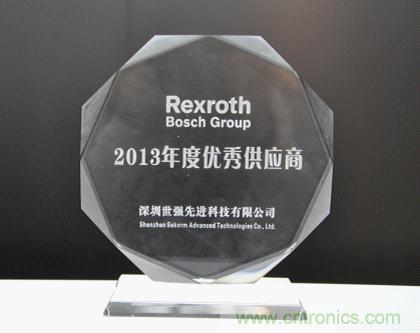 圖1:世強獲博世力士樂(西安)2013年度優(yōu)秀供應(yīng)商獎