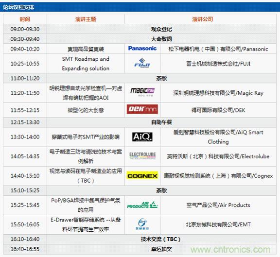 據(jù)主辦方介紹,為期一天的論壇將結(jié)合嘉賓演講和產(chǎn)品展示兩大形式為到場(chǎng)專業(yè)觀眾提供豐富的視聽體驗(yàn),更為電子制造設(shè)備/系統(tǒng)/方案使用者提供了深入了解供應(yīng)商“智”造服務(wù)的良好機(jī)會(huì)。在嘉賓演講版塊,主辦方邀請(qǐng)到來(lái)自Panasonic(松下)、Fuji(富士機(jī)械)、明銳理想、DEK(得可)、英特沃斯、康耐視、空氣產(chǎn)品、東械等涵蓋電子制造全產(chǎn)業(yè)鏈各生產(chǎn)環(huán)節(jié)的領(lǐng)先供應(yīng)商代表。在現(xiàn)場(chǎng)產(chǎn)品展示方面,與會(huì)觀眾更有機(jī)會(huì)近距離體驗(yàn)來(lái)自Fuji(富士機(jī)械)、明銳理想、DEK(得可)、華普通用、英特沃斯、善思光電、章和電氣、首為國(guó)際(APOLLO SEIKO)、Praxair(普萊克斯)、東星科技、日本奧泰斯(OPTEX FA)等優(yōu)質(zhì)供應(yīng)商提供的先進(jìn)技術(shù)及設(shè)備。