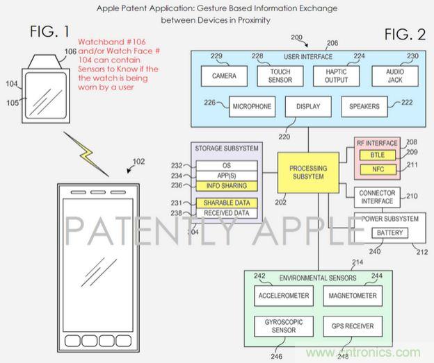 考慮到智能手表的屏幕面積非常有限,設(shè)備間若想要交換數(shù)據(jù),還真不是一件操作起來(lái)很方便的事情。對(duì)此蘋果有一些自己的想法,在其新申請(qǐng)的一項(xiàng)專利中,就提到了一種基于運(yùn)動(dòng)感應(yīng)器的新技術(shù)。簡(jiǎn)單來(lái)說(shuō),使用該技術(shù)的可穿戴設(shè)備(對(duì)蘋果來(lái)說(shuō)就是 Apple Watch)在配戴者一起做出握手、鞠躬或擊拳等動(dòng)作時(shí),就會(huì)自動(dòng)通過(guò)無(wú)線方式交換相關(guān)數(shù)據(jù)。用戶甚至都無(wú)需用手指觸摸屏幕,而這顯然能減少操作上的不便。