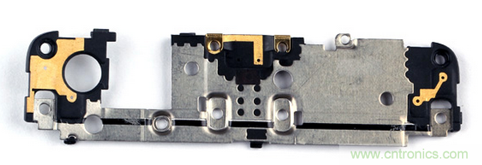 底部模塊為PC加少量不銹鋼材料制造,模塊內(nèi)集成了揚聲器和LDS主通訊天線。