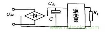 隨著各行各業(yè)控制技術(shù)的發(fā)和要求可操作性能的提高,許多場合的用電設(shè)備都不直接使用通用交流網(wǎng)提供的交流電作為電能來源,而是通過各種形式對其進行變換,從而得到各種所需的電能形式。它們的幅度、頻率、穩(wěn)定度及變化方式因用電設(shè)備的不同而不同,如電動機變頻調(diào)速器、綠色照明電源、開關(guān)電源等等,它們接入電壓網(wǎng)后,也有一個交流電源的利用率問題。上述產(chǎn)品有一個共同特點就是:利用橋式整流器和大容量的濾波電容實現(xiàn)AC/DC轉(zhuǎn)換,由工頻市電獲得直流電壓;雖然交流輸入電壓基本上未出現(xiàn)波形失真,但輸入電流卻不再保持正弦波形,而是呈不連續(xù)的峰值較高的脈沖。如圖1所示的橋式整流濾波電路。只有當輸入交流電源Uac的瞬時值高于電容C的電壓時,整流二極管才導(dǎo)通,Udc基本上維持不變,可見二極管的導(dǎo)通角明顯小于180°,輸入電流波形嚴重失真。