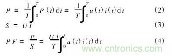 設(shè)u(t)為瞬時供電線路電壓,i(t)為瞬時輸入電流,T為輸入電壓的周期,U、I分別為輸入電壓、電流的有效值,則有