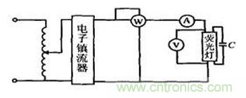 電工學(xué)和電路原理課程中有測試熒光燈電路功率因數(shù)實驗,通常功率因數(shù)測量有兩種方法:一是利用功率因數(shù)表;二是利用圖2所示的三表法,即功率表、電壓表、電流表。有的用電子鎮(zhèn)流器與電感式鎮(zhèn)流器啟動熒光燈做比較實驗,讓學(xué)生明白提高線路功率因數(shù)的意義,但在做比較實驗時主要存在兩個問題:
