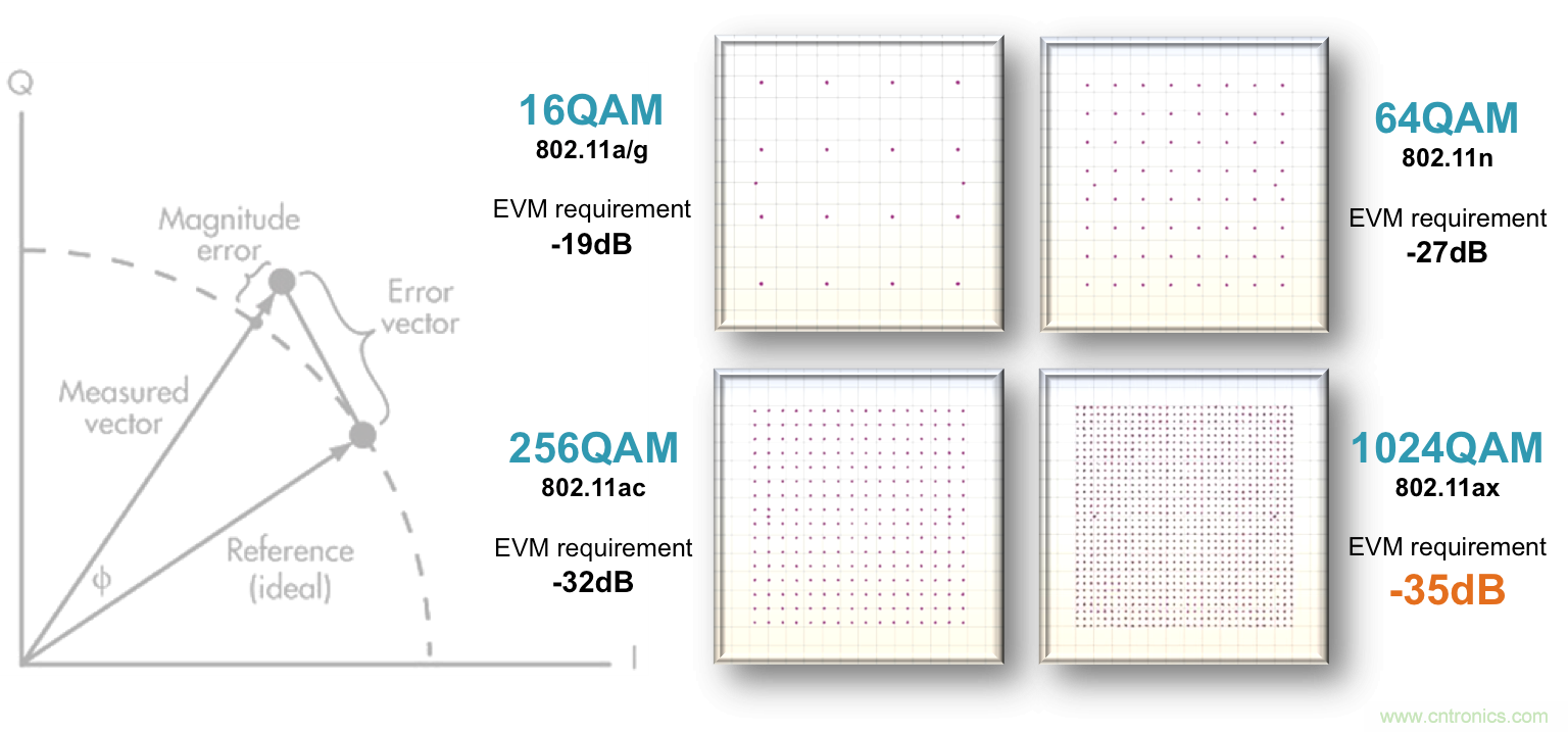 圖4. 不同調(diào)制階數(shù)的EVM指標要求