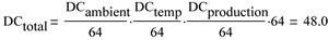 從上可見,運(yùn)用48的組合點(diǎn)校正值即可得到56mcd的期望亮度。請注意,由于溫度引起亮度下降,故本計(jì)算中的起始電流被設(shè)置為起始生產(chǎn)電流的90%。