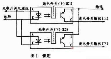 加鎖狀態(tài)下,計(jì)算機(jī)檢測(cè)光電開關(guān)輸出(上)信號(hào),若為低電平,則輸出加鎖控制信號(hào)到電機(jī),控制凸輪向上運(yùn)動(dòng),擋片(圖1中虛線所示)隨凸輪運(yùn)動(dòng)逐漸擋住光電開關(guān)(上)發(fā)光部分,K1停止工作,光電開關(guān)輸出(上)變?yōu)楦唠娖剑醇渔i到位信號(hào),控制計(jì)算機(jī)接收高電平并撤銷對(duì)電機(jī)的控制信號(hào);解鎖狀態(tài)下,計(jì)算機(jī)檢測(cè)光電開關(guān)輸出(下)信號(hào),若為低電平,則輸出解鎖控制信號(hào)到電機(jī),控制凸輪向下運(yùn)動(dòng),擋片隨凸輪運(yùn)動(dòng)逐漸擋住光電開關(guān)(下)發(fā)光部分,K2停止工作,光電開關(guān)輸出(下)變?yōu)楦唠娖剑唇怄i到位信號(hào),控制計(jì)算機(jī)接收高電平并撤銷對(duì)電機(jī)的控制信號(hào)。
