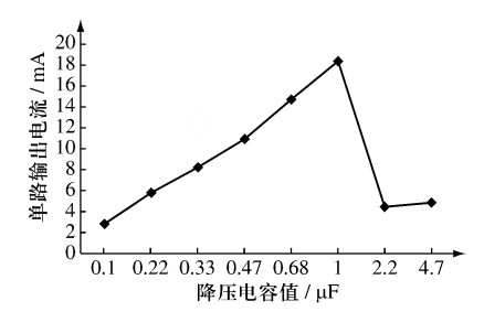 圖4 實測輸出電流與降壓電容的關(guān)系