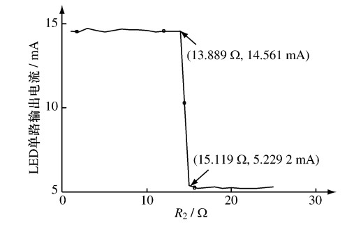 圖3 輸出電流與R2 阻值關(guān)系曲線