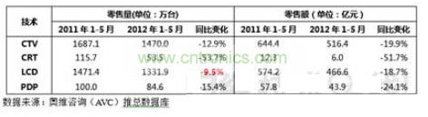 圖1 2012年1-5月中國彩電市場(chǎng)銷量與銷售額