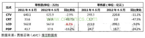 圖2 2012年4-5月中國彩電市場(chǎng)銷量與銷售額