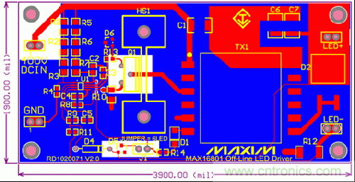 圖3. LED驅(qū)動器電路板布局