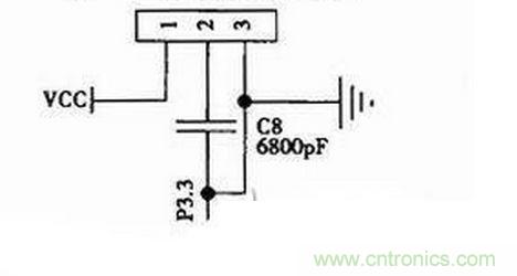 探測人體是否在辦公場所室內時,探測人體是否存在的熱釋電紅外傳感器要具有靈敏度高、穩(wěn)定性好、抗干擾性強、具有延時性好的功能,選取時應根據(jù)辦公場所的工作時間等因素而定,通常選用HT-208型號的熱釋電紅外傳感器,根據(jù)此芯片的功能特點設計的人體信號采集電路如圖3所示。其中的熱釋電紅外傳感器的1 號端引腳外接電源信號,2號端引腳外接采集信號,常要接一個電容量為6800pF的電容器與3號端引腳相連接,而3號端引腳是外接地的,所以熱釋電紅外傳感器是用2號端引腳與單片機AT89S52的P3.3引腳端相連接的,而為了增強信號采集的穩(wěn)定性即熱釋電紅外傳感器探測的穩(wěn)定可靠,常在單片機的引腳端口處再接一個100 kΩ的上拉電阻。