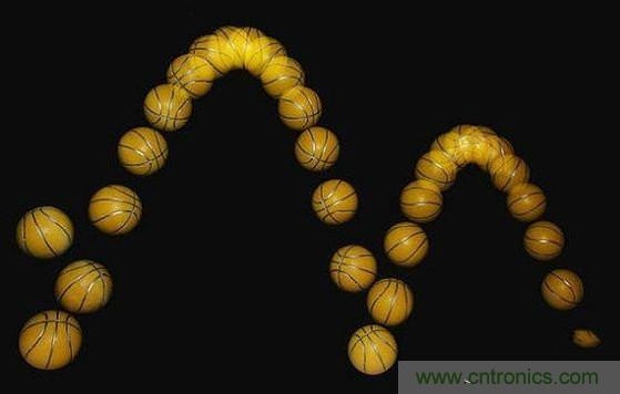 然而,間接閃爍(Indirect Flicker)可以在更高的頻率被發(fā)現(xiàn),及其各種表現(xiàn)形式。最常見的,稱之為閃動閃爍(Stroboscopic Flicker),是因移動的物體或者一個快速眼動造成鋸齒狀的視覺感知現(xiàn)象。閃動閃爍是LED使用者某些共同的使用者經(jīng)驗,且觀看其前后關(guān)系,閃動閃爍幾乎是不明顯,卻讓人無法接受——運氣好眼睛還可跟上圖中錯誤光線下的籃球。