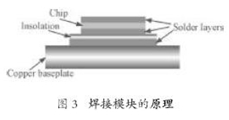 將一個硅片裝配和連接到一個器件上有不同的方法。在許多模塊中,硅片被焊在兩側(cè)(陽極和陰極側(cè)),并且是單面冷卻。常用的焊接模塊的原理如圖3所示。