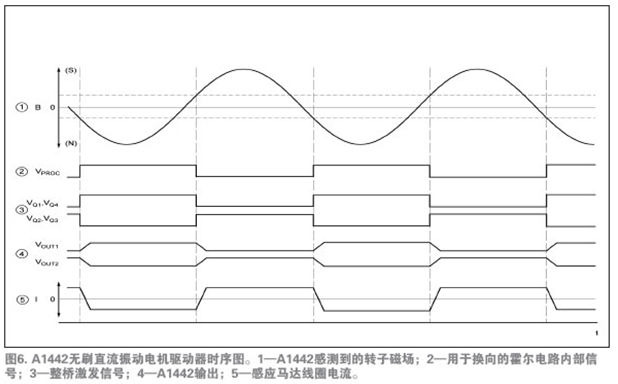 數(shù)字換向與線性軟開關(guān)避免了電火花,從而也避免了RFI干擾。Allegro完全集成的A1442霍爾效應(yīng)傳感器與精密放大器通過比較器電路連接到一個(gè)內(nèi)部全橋輸出電路,該比較器可確定適當(dāng)?shù)膿Q向點(diǎn)。圖4中馬達(dá)的第三條線是可選的,它連接到A1442的啟用針腳(enable pin),用作控制主動(dòng)制動(dòng)與睡眠功能。第三線可將IC針腳連接到PCB的VCC。