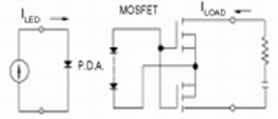 圖1表示FET型半導(dǎo)體繼電器是一種最基本的電路。該電路因輸出元件的功率MOSFET是電壓驅(qū)動型元件,因此,由于光電二極管陣列(P.D.A)供給的電壓,而柵極電容被充電,通過使柵極電壓上升到開啟電壓值(門檻電壓),就可使繼電器動作。