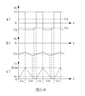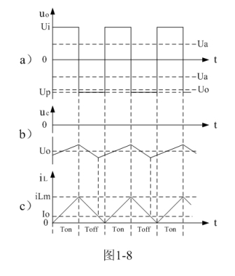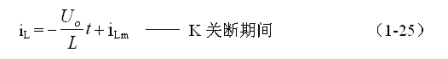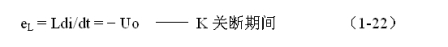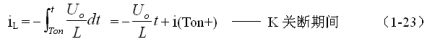 式中–Uo前的負號,表示K關斷期間電感產(chǎn)生電動勢的方向與K接通期間電感產(chǎn)生電動勢的方向正好相反。對(1-22)式進行積分得: