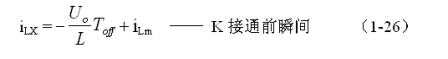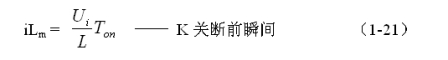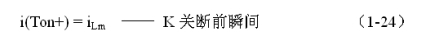 式中i(Ton+)為控制開關K從Ton轉換到Toff的瞬間之前流過電感的電流,i(Ton+)也可以寫為i(Toff-),即:控制開關K關斷或接通瞬間,之前和之后流過電感L的電流相等。實際上(1-23)式中的i(Ton+)就是(1-21)式中的iLm,即:
