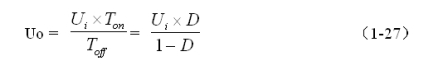 由(1-27)式可以看出,反轉式串聯(lián)開關電源輸出電壓與輸入電壓與開關接通的時間成正比,與開關關斷的時間成反比。