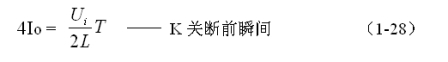 式中iL為流過儲能電感L電流的瞬時值,t為時間變量;i(0)為的初始電流,即:控制開關K接通瞬間之前,流過儲能電感L中的電流。當開關電源工作于臨界連續(xù)電流狀態(tài)時,i(0) = 0 ,由此可以求得流過儲能電感L的最大電流為: