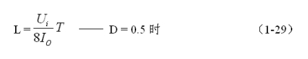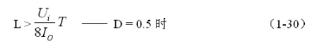 (1-29)和(1-30)式,就是計算反轉式串聯(lián)開關電源中儲能電感的公式。同理,(1-29)和(1-30)式的計算結果,只給出了計算反轉式串聯(lián)開關電源儲能濾波電感L的中間值,或平均值,對于極端情況可以在平均值的計算結果上再乘以一個大于1的系數(shù)。
